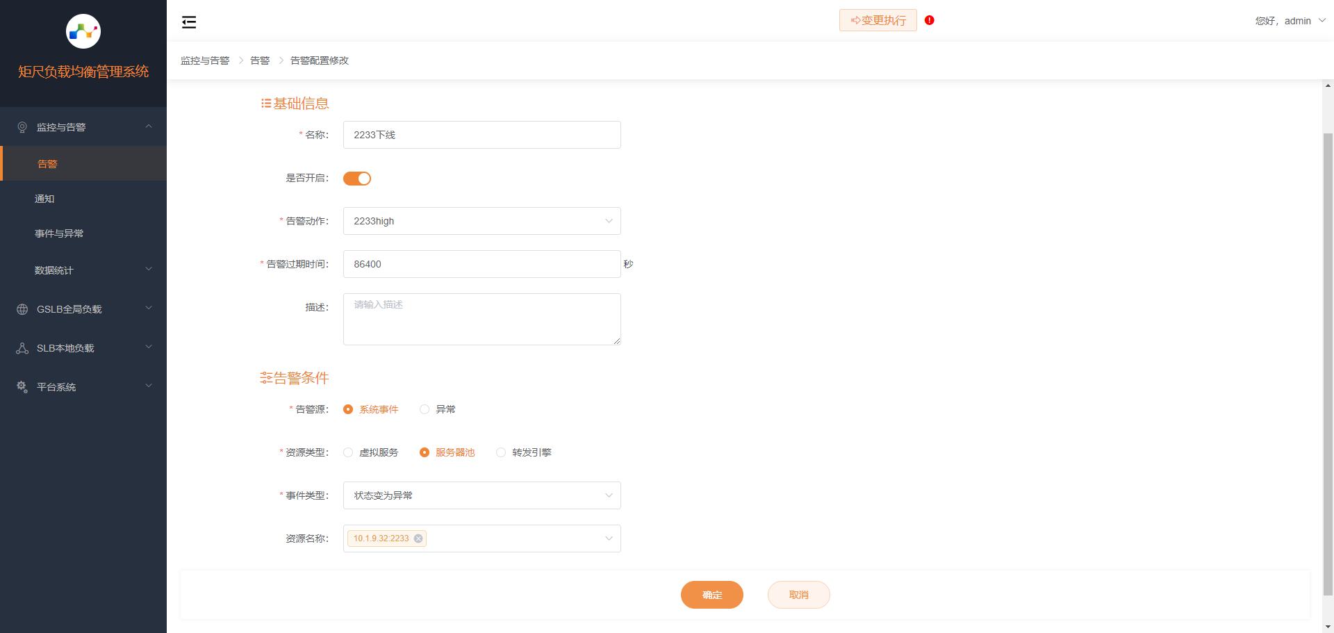 - 系统事件:由虚拟服务、服务器池、服务器节点、转发引擎、管理节点自身产生的事件,例如节点下线、主备切换等。