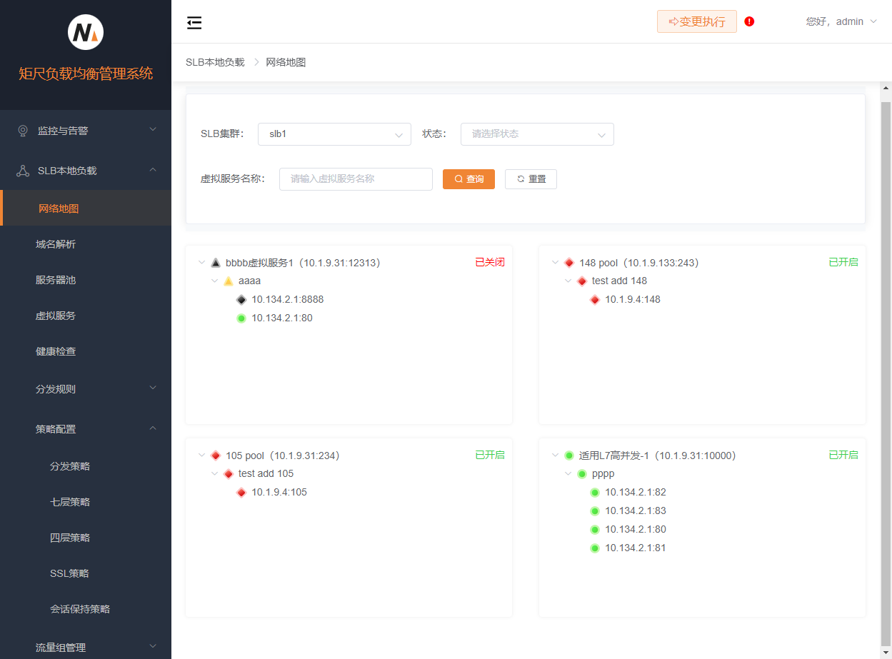 包含虚拟服务、服务器池与服务器节点,详见网络地图