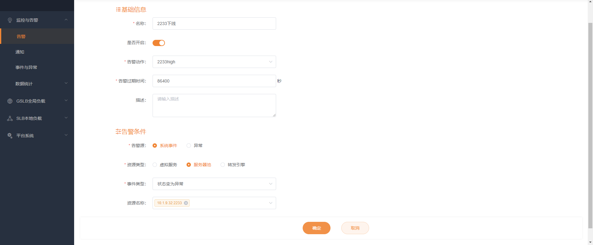 - 系统事件:由虚拟服务、服务器池、服务器节点、转发引擎、管理节点自身产生的事件,例如节点下线、主备切换等。